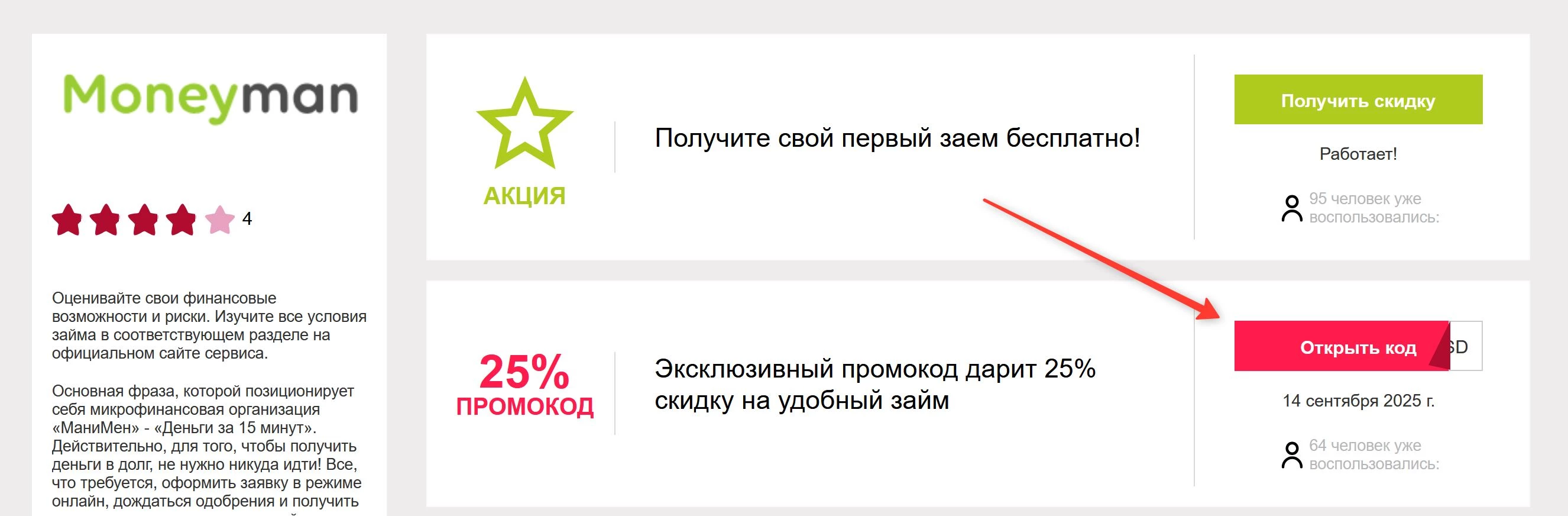 Акции Moneyman декабрь 2025